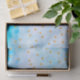 Estrellas de oro purpurina de color morado simuladas en color crudo en tonos azul acuático.