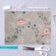 Papel de tejidos de flores botánicas para desacoplamiento, arte, envoltura de regalo. Los colores son azul, rosa, verde, blanco sobre un fondo gris. ¡Los botánicos de época son tan encantadores!
