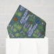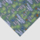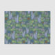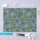 Flores y mariposas deslizan papel de tejido azul y púrpura sobre verde neutro
