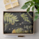 Este papel tisular puede utilizarse para desacoplar o envolver regalos. Tiene un diseño general de plantas, y terrarios de vidrio en forma de frasco y botella con plantas doradas, amarillas y verdes y botánicos en un fondo negro. Nos encanta esta impresión para un estilo de decoración estética de cottagecore o boho.