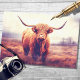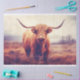 Disfruta de esta majestuosa vaca Highland en un paisaje nublado en papel de página. Su revestimiento de tela añade un toque de sofisticación a sus artesanías. Abraza la magia nublada de las tierras altas. ¡Pide ya el tuyo!