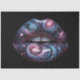 Un impresionante acercamiento de labios brillantes, ligeramente separados, infundidos con un impresionante tema cósmico. Las texturas giratorias de púrpura profundo, el blues de medianoche y los rosados de polvo de estrellas crean una galaxia a través de los labios, mientras que los detalles resplandecientes de nebulosas y de estrellas bailan por toda la superficie con una complejidad fascinante.