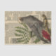 Un collage de un loro gris y hojas de helecho sobre un fondo de papel de periódico vintage.