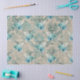 Pájaros blancos sentados en flores azules con esténciles azules sobre un fondo de papel noticioso. Perfecto para despucharse, artesanías o envolver regalos. ¡Asegúrate de comprobar la bolsa de regalo correspondiente!