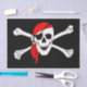 Papel de tejidos con imagen de una bandera pirata en colores rojo, negro y blanco.