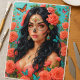 Celebre la belleza audaz y el arte cultural con este impresionante diseño de la mujer del cráneo de azúcar Muerto, perfecto para envolver regalos, empaques boutique o artesanías creativas. Con una llamativa mujer de cabello oscuro con intrincada pintura en la cara del cráneo del azúcar, rodeada de exuberantes rosas de coral y mariposas luminosas, este papel de tejido captura la elegancia, la tradición y el glamour en cada hoja. El vibrante fondo turquesa hace que los corales florals y las mariposas verde azuladas se desprendan, mientras que el diseño con joyas y acentos dorados hiperdetallados le dan un acabado lujoso. Ideal para celebraciones, bodas, cumpleaños o proyectos de decoración de moda boho.
