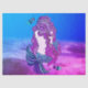 Papel de tela de regalo con la imagen de una sirena sentada en la arena bajo el mar en colores azul y violeta.