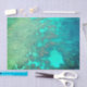 Una hermosa vista aérea de la barrera de coral/gran barrera de arrecife en las bellas aguas turquesa del océano. En tonos verdes, azules, turquesas y dorados.