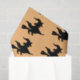 Esta bruja temible sobre un escoba aparece en este papel de tejido festivo para tus regalos de Halloween.