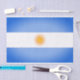 Papel de papel de regalo con la imagen de la bandera argentina en colores azul y blanco con sol dorado.