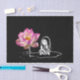 Papel de tejido nocturno de hadas con imagen de chica sentado en una almohadilla de lirio por una flor rosa de loto.