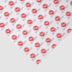 Este lindo papel de tejido presenta un patrón de labios rojos con texto negro que dice: Amor y Besos, en un fondo blanco.