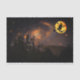 Papel higiénico de regalo de Halloween con imagen de castillo espeluznante, murciélagos y una bruja volando frente a una luna llena.