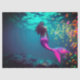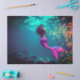 Papel de papel de regalo con la imagen de una Sirenita con cola rosa y pescado amarillo y rosa bajo el agua en el mar.