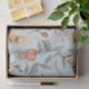 Para los regalos más bonitos, un papel higiénico de inspiración vintage de florales en rosa y crema dusky, sobre un fondo azul polvo.