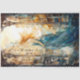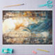 Un diseño inspirado en el estilo Art Nouveau de cristal de un chica con un vestido de flores parado frente a una ciudad para sus diseños de Decoupage y de restauración de muebles