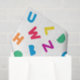 Un diseño de letras en bloques de letras de color arcoiris brillante y colorido dibujado a mano.