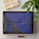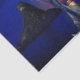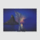 Tejido de papel con la imagen de una cola de sirena contra una luna emergente en un mar azul.