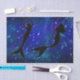 Papel de papel higiénico de sirena azul Shimmery con siluetas de siluetas de sirenas nadando.