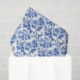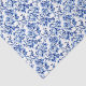 Este papel de tejido presenta un diseño floral azul y blanco.