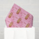 Un lindo papel de tejido rosado con el patrón de 3 manzanas de caramelo, un par de corazones y algo de tipografía . Perfecto para cualquier ocasión.