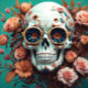 Seda Papel de Tejido Turquesa de calavera de flores Mou
