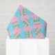 Se ha añadido al diseño "Dango Away" un fondo de cuadros azules y rosas que recuerda a los pétalos de Sakura flotando suavemente a través de un cielo primaveral fresco. La adición de una ligera sombra ayuda al dango a reaparecer.