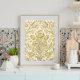 Papel pintado de estilo Art Deco (William Morris). Ornamento luminoso de tulipanes, iris y claveles de oro amarillo entrelazados con ramas y hojas de plata dorada. Papel de tejido de descomposición. Este artículo será perfecto para sus proyectos de artesanía.