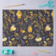 Gran papel de tejido para el amante de la planta o jardinero. Este diseño presenta una impresión completa de productos botánicos en oro/ amarillo y gris sobre un fondo negro. Los jarrones de vidrio y las linternas se espolvorean a lo largo de todo el diseño. Puede utilizarse para desacoplar o envolver regalos con una estética de cottagecore o boho.
