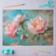 Hermoso cuadro de aceite de piedra rosa con un fondo azul intenso, ideal para descomponer el mobiliario.