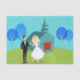 Este papel retro Boda de par de tejidos le hará oír campanas de bodas. El estilo de los años 60, con un diseño de arte minimalista, cuenta con un novio y una novia en el día de su boda. La feliz pareja se ve lo suficientemente buena como para estar parado encima de una torta boda. Pero no lo son. Están parados sobre hierba verde y exuberante. El debonario Mr. está usando un clásico esmoquin negro con corbata de arco negro. ¡Abajo, damas! ¡Se lo llevaron! Está sosteniendo la mano de su hermosa señora, que se ve positivamente radiante en su longitud de té, vestido blanco con cintura ajustada a la forma y falda flarroja. Realmente parece una princesa con su tiara y su velo boda blanco y gauznante apoyándose en su bonito rubia. Al lado, un camino en el césped conduce a la capilla más encantadora del mundo. La pintoresca, verde azulada y turquesa iglesia es el lugar perfecto para decir: "¡Lo hago!" Sí, aquí está la iglesia. Aquí está el campanario. Solamente podemos asumir que, detrás de ese rojo brillante, las puertas dobles son un cuarto de personas que solamente esperan compartir la felicidad de esta pareja. El entorno es pintoresco, con cuatro árboles estilísticos personalizados en tonos azules. Es un día hermoso para un boda, como podemos ver desde el cielo acuático impecable. Lo único que falta en este diseño moderno de mediados de siglo es el arroz, y podemos suponer que eso será inminente.