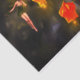 Papel tisular con imagen de hada de noche iluminan algunas flores de linterna naranjas.