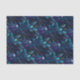 Un hermoso papel tisular con un patrón de hojas brillantes en azul.