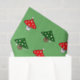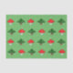 Un patrón de hongos personalizados festivos. Uno tiene una gorra como un árbol de Navidad y el otro tiene una gorra como un sombrero de Santa. El fondo es verde pálido.
