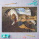 Papel de tejidos creativo y único en descodificación que utiliza una gama de texturas, patrones y ilustraciones vintage en paletas de colores vibrantes, silenciadas. Perfecto para desconexión, reserva de chatarra y otras artesanías de papel. Chica vintage con su perro y libro.