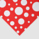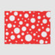 manchas blancas de diferentes tamaños sobre un fondo rojo.