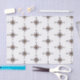 Papel de tejidos para regalos con imágenes de brújulas arregladas en un patrón de baldosas en un fondo blanco.