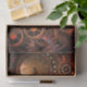 Papel de papel de regalo con la imagen de un reloj y engranajes vintage.