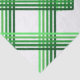 Líneas verdes en cinco tonalidades diferentes, de oscuro a claro, de abajo a arriba. Dos conjuntos de rayas se colocan diagonalmente en las esquinas opuestas. Cuatro grupos de cinco líneas se interconectan en un cuadrado del centro.