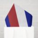 En este patrón geométrico patriótico original convergen los cavernas rojas, blancas y azules (formas V) alternativos. Imagen creada digitalmente. Copyright © Claire E. Skinner. Todos Los Derechos Reservados.