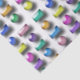 Los botones 3D, en rectángulos y círculos, se muestran en múltiples colores pastel. Diseño replicado varias veces en diagonal, a través de la superficie. Amarillo, naranja, rosa, magenta, turquesa, azul, violeta