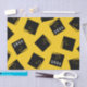 Regalo de graduación creativo o tejido decorativo fiesta con tapones de graduación negros y dorados sobre fondo amarillo. Editar texto al personalizar para tu graduación favorita.