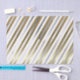 Papel de tejido de vacaciones con un diseño de rayas diagonales de oro, blanco y plata.