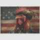 En el corazón del Oeste Americano, vivía un gallo llamado Ruster, conocido por su inquebrantable patriotismo y su singular estilo vaquero. Ruster no era cualquier gallo; llevaba un gorra de vaquero marrón adornado con una pluma, y sus vibrantes plumas en tonos rojos, naranjas y negros lo hacían destacarse en cualquier multitud. Cada mañana, mientras el sol subió sobre las llanuras onduladas, Ruster se arrodillaba orgullosamente frente a una envejecida bandera estadounidense que se encontraba alta en la plaza del pueblo. El aspecto vintage de la bandera, con sus colores un poco desvanecidos, le da un encanto rústico al lugar. El cuervo de Ruster fue más que una simple llamada de atención; fue un saludo al espíritu de libertad y a los valores que la bandera representaba. Un día, a medida que se acercaba el 4 de julio, el pueblo decidió honrar a Ruster por su dedicación y patriotismo. Organizaron un gran desfile, con Ruster liderando el camino. Vestido con su camisa enlucida y su gorra de vaquero, Ruster subió a lo alto de una hermosa carroza decorada, la bandera estadounidense ondeando orgullosamente detrás de él. A medida que el desfile recorría la ciudad, tanto niños como adultos se alegraron y saludaron. Ruster, con su seria expresión y sus ojos vigilantes, asintió con la cabeza en reconocimiento, su corazón se hinchó de orgullo. El desfile fue una celebración no sólo de la independencia de la nación, sino también del espíritu de unidad y comunidad que Ruster encarnó. Aquella noche, mientras los fuegos artificiales iluminaban el cielo nocturno, Ruster se paró alto frente a la bandera, con su silueta iluminada por las ráfagas de color. La gente de la ciudad se reunió alrededor, sus rostros brillaban de admiración y respeto. Ruster sabía que sus pequeños actos de patriotismo habían tenido un gran impacto en los corazones de los que lo rodeaban. Con un último cuervo que repitió toda la noche, Ruster reafirmó su compromiso con los valores que apreciaba. Era más que un simple gallo; era un símbolo del espíritu perdurable del Oeste Americano, un verdadero vaquero en el corazón.