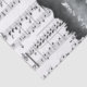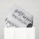 Tejido con imagen de notas musicales y la silueta de una pareja enamorada.