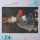 Papel de tejidos creativo y único en descodificación que utiliza una gama de texturas, patrones y ilustraciones vintage en paletas de colores vibrantes, silenciadas. Perfecto para desconexión, reserva de chatarra y otras artesanías de papel. Retrato vintage de un hombre por Julius LeBlanc Stewart , representa a un arrogante arrogante en una capa roja vibrante con un gorra negro y una pluma marrón.
