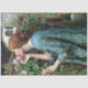 Papel de tejidos creativo y único en descodificación que utiliza una gama de texturas, patrones y ilustraciones vintage en paletas de colores vibrantes, silenciadas. Perfecto para desconexión, reserva de chatarra y otras artesanías de papel. La escena muestra a una señora vintage con el pelo rojo y vestido verde azulado parada al lado de una pared de jardín y rosas rosas rosas rojas de olor de John William Waterhouse. Conocido como el alma de un Rosa o mi dulce Rosa.