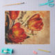 Hermoso grunge floral, un collage de tulipanes en un naranja profundo con fondo crudo.