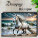 Majestuoso caballo blanco en una playa dramática. Transformar el mobiliario costero y aumentar el valor y la belleza. Perfecto para las casas de playa. Perfecto para: Paredes costeras Decoración de la casa de playa Salones de vida Mesas de entrada Marinas Colores Pairas: Perla + Crema Verde azulada + Arena oceánica + Azul Blanco + Oro de Ola + Tormenta Características Clave: Movimiento dinámico Olas oceánicas Escena de sol Flor