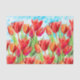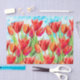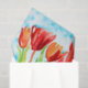 Pintura acuarela de tulipanes de primavera rojos sobre un fondo acuático y blanco. Ideal para ocasiones de Semana Santa y primavera para envolver regalos, artesanías de papel y descomposición. © Tim Coffey.